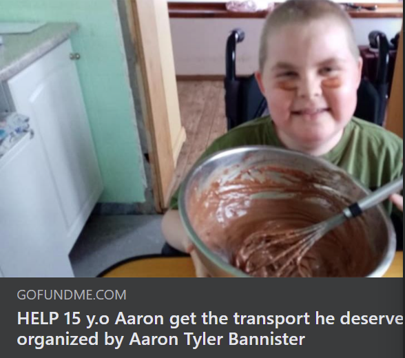 My name is Helen Privett, and I am raising money to help Aaron Tyler Bannister through his struggles living with Duchennes Muscular Distrophy.